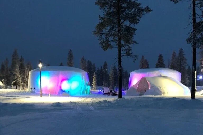 Within the Elf Wonderland area of the Arctic Circle Centre are two stunning igloos that are lit up in the darkness with vibrant colours.